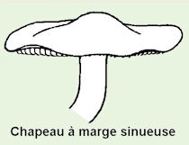 sans former un sillon (comme chez les Tricholomes qui ont les lames