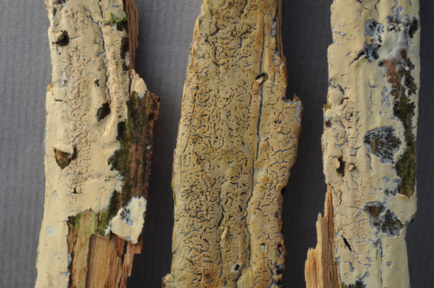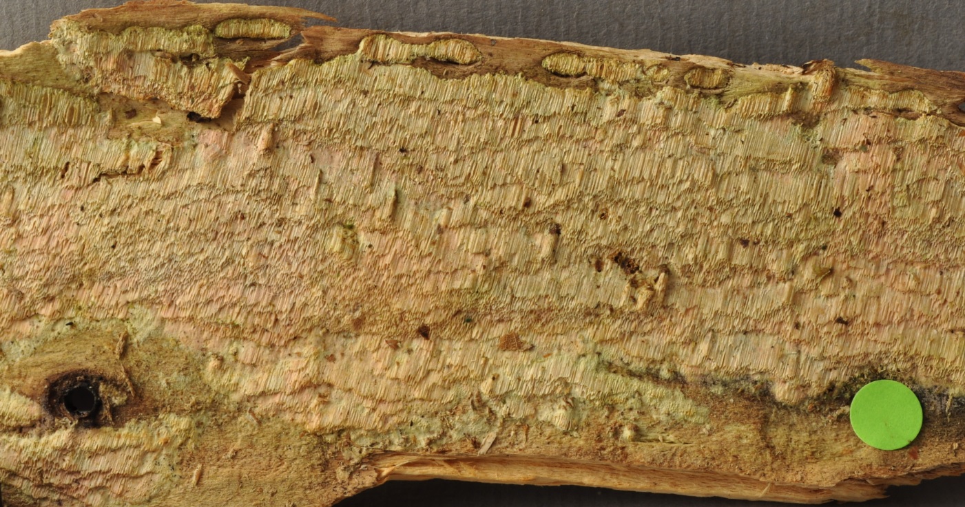 Spores : L=6.0 ± 0.5 μ, e=2.8 ± 0.2μ, Q=2.2±0.1, n=25 (RCA). Fructification nommée Stereum sanguinolentum, puis Lopharia spadicea et finalement Amylostereum chailletii sur la base du tableau comparatif. L'absence de rougissement au frottement était sans doute suffisant pour éliminer S.sanguinolentum. L'amyloïdité des spores, la largeur sporale, l'habitat sont les caractéristiques essentielles qui mènent au choix de A.chailletii.