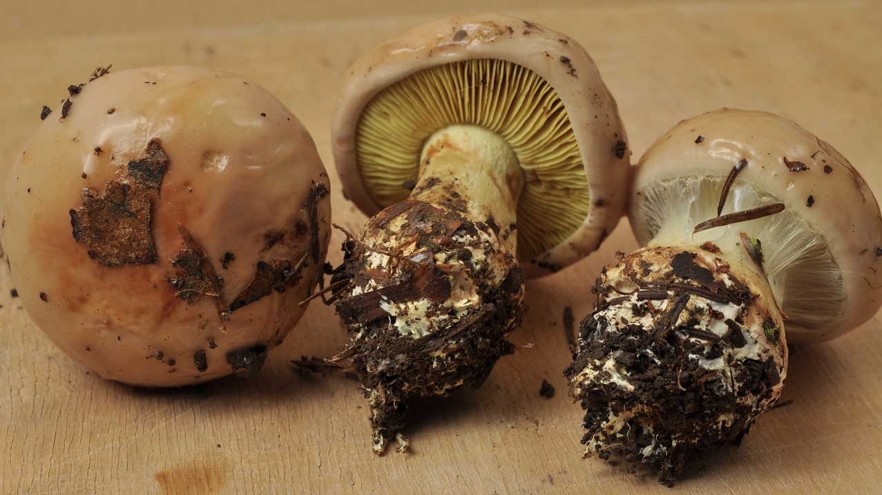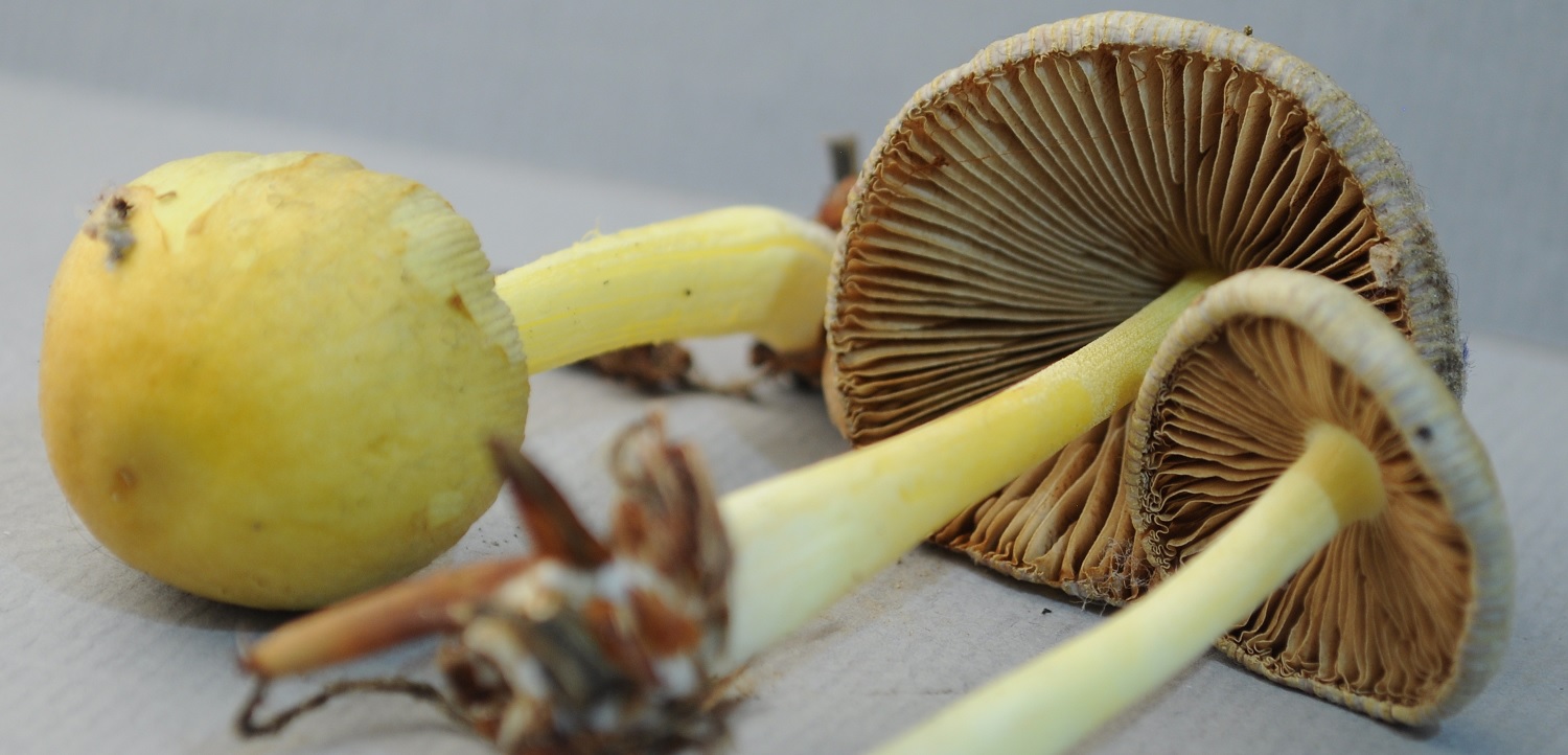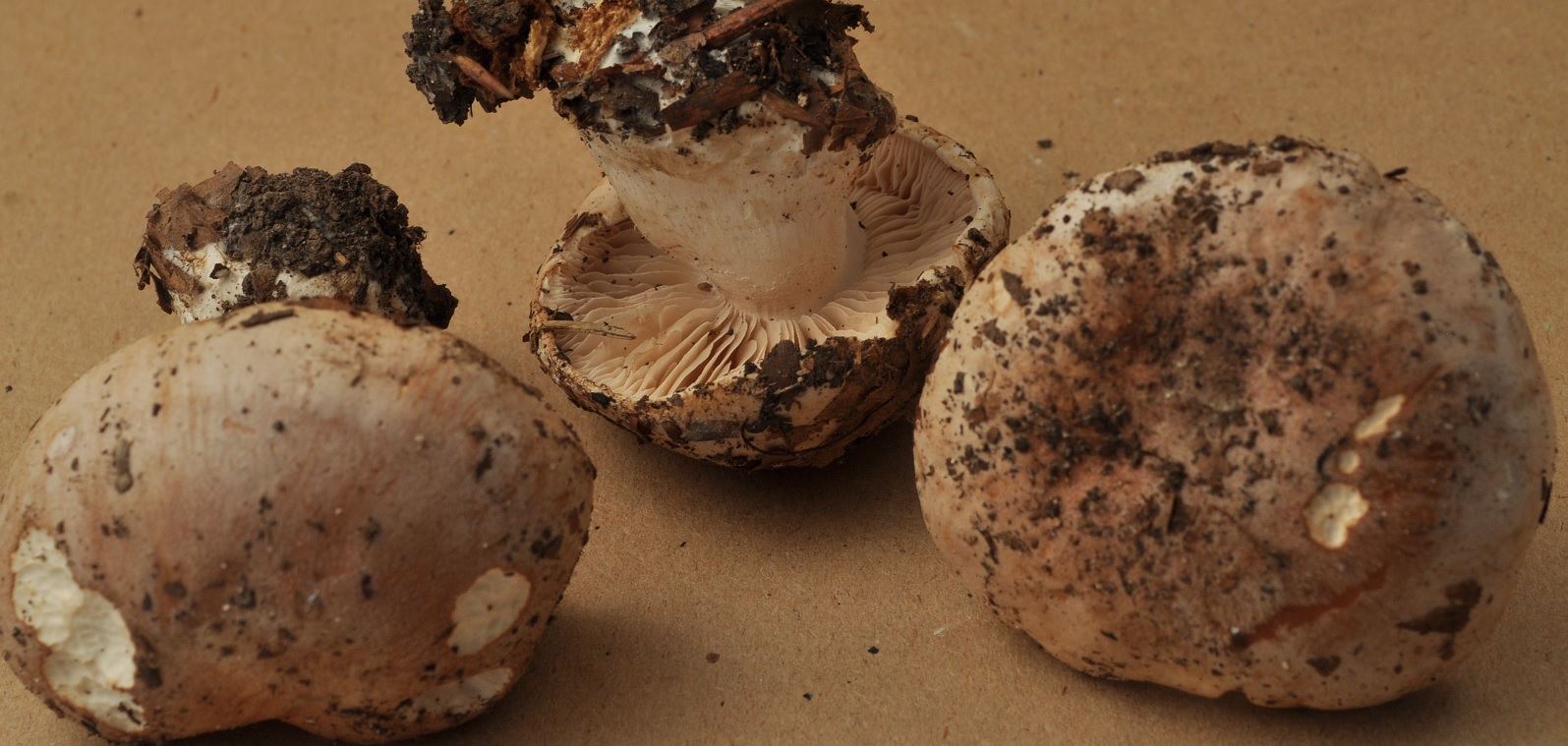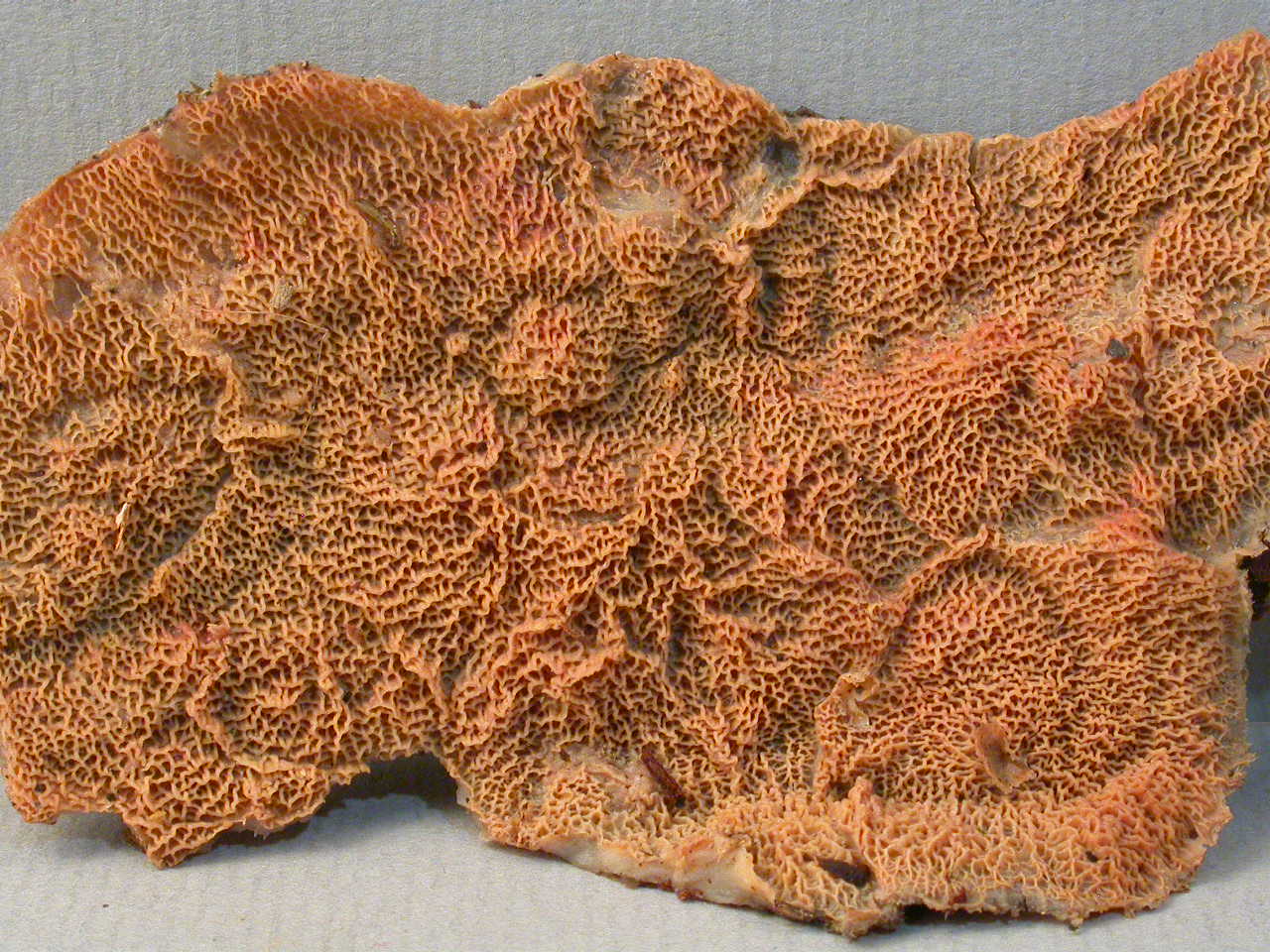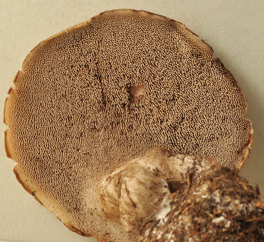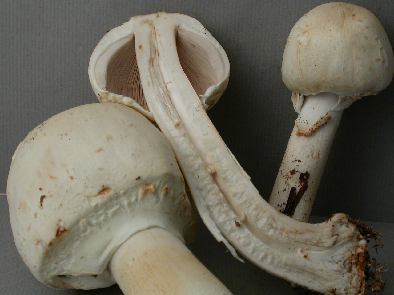 zoom, CD8-6 33. Gros exemplaires (~ 20 cm) observés sur site. Spores non lisses observées dans l'eau. Gléba devient jaune, subgléba reste blanche.