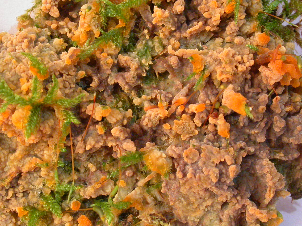 Rustroemia bulgarioides Asco sur cône d'épicéa, au printemps, après la neige.photo (site SMB Seyssinet).