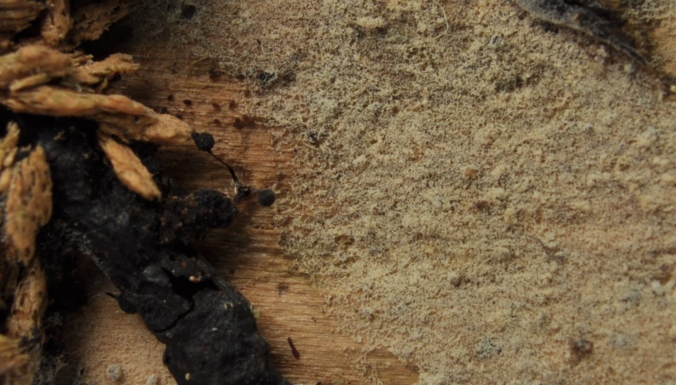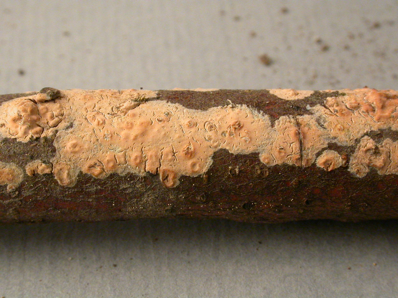 Spores : L= 3-3.2 μ, e ~ 1 μ Même origine, même tronc que récolte précédente. La forme des spores: "strongly curved, blunt ends, biguttulate" correspond à S.lenis selon Niemela & al., par contre les dimensions sporales comme le nb de pores/mm, sont celles de S.vulgaris ! Confirmé par B.Rivoire consulté.