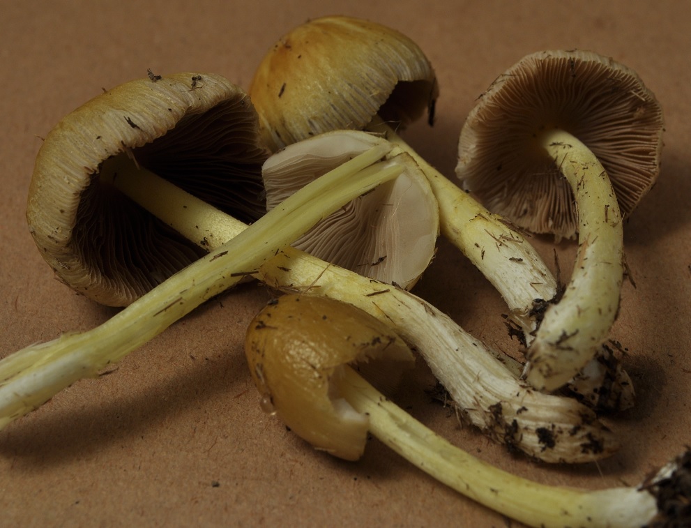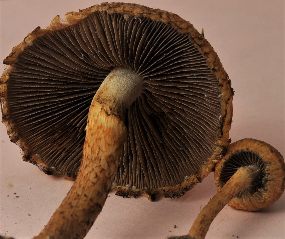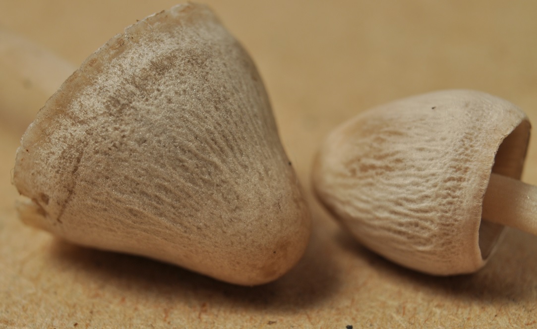 dessous, CD7-5 23/26, Photos avec Panaeolus acuminatus. A noter une différence essentielle dans l'attache des lames.