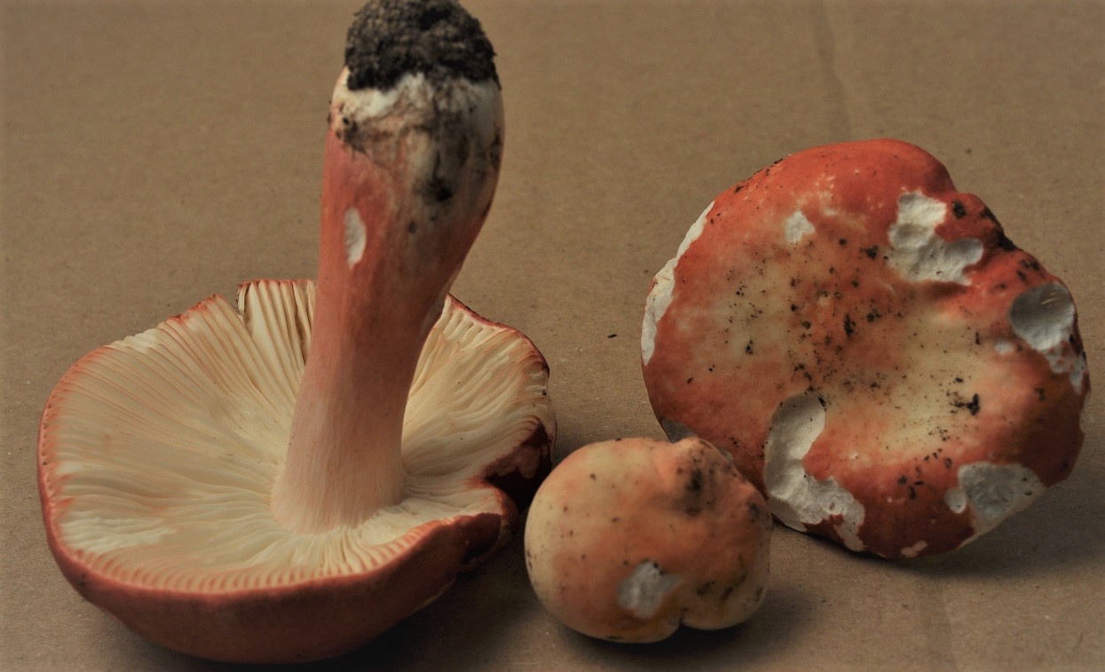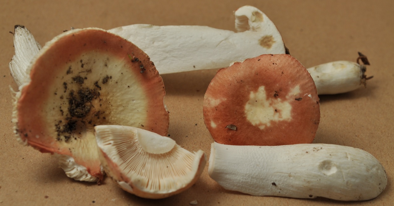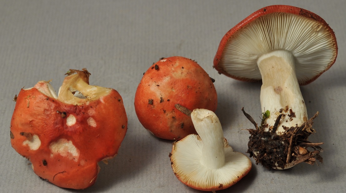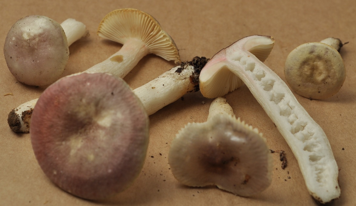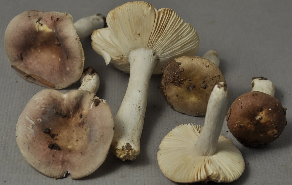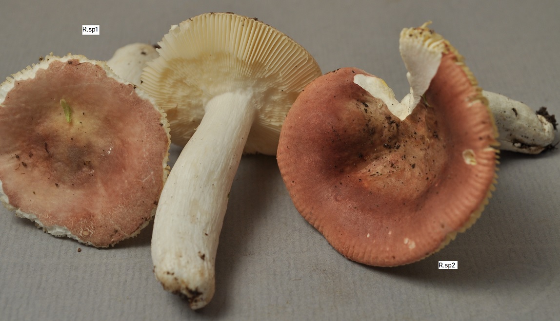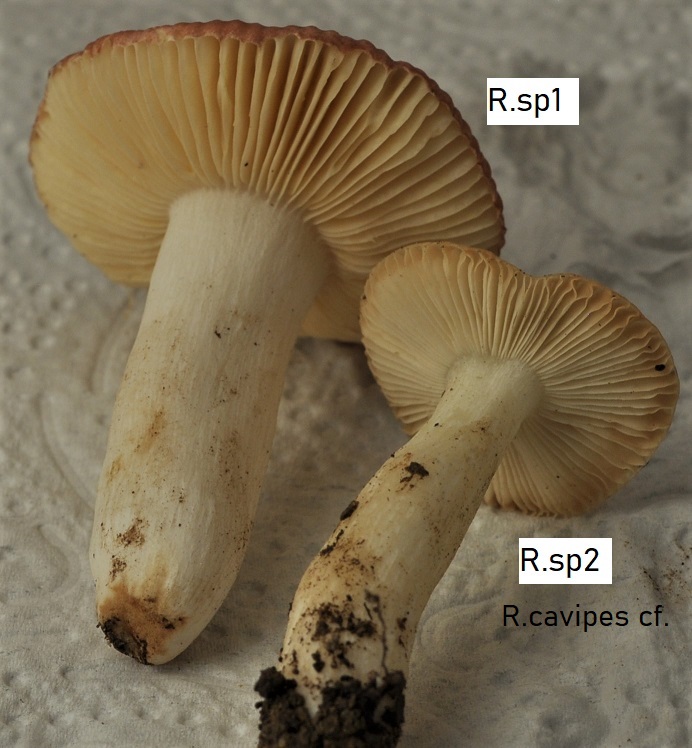 photo, CD8-F7 59. Habitus et écologie de R.suberythropus. Noter les couleurs du chapeau différentes.