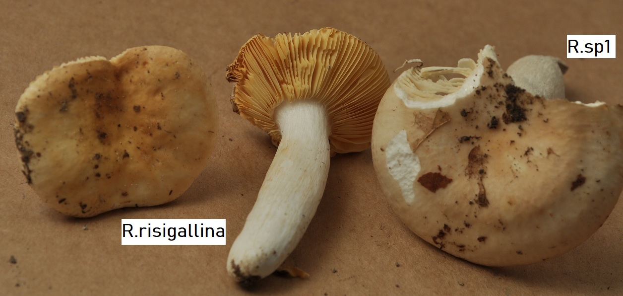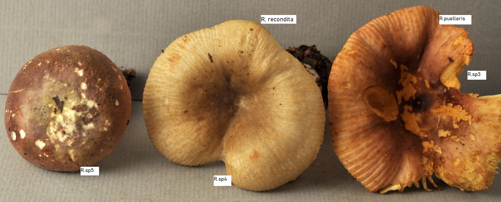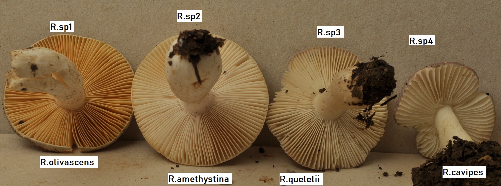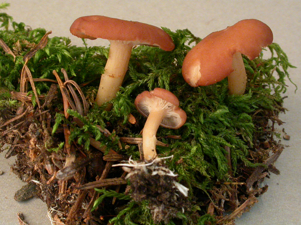 photo, CD8-F7 59. Habitus et écologie de R.suberythropus. Noter les couleurs du chapeau différentes.