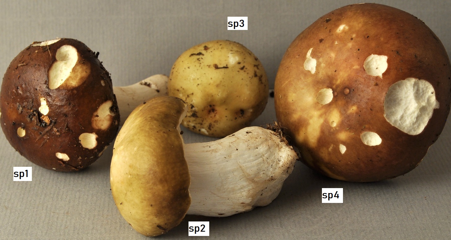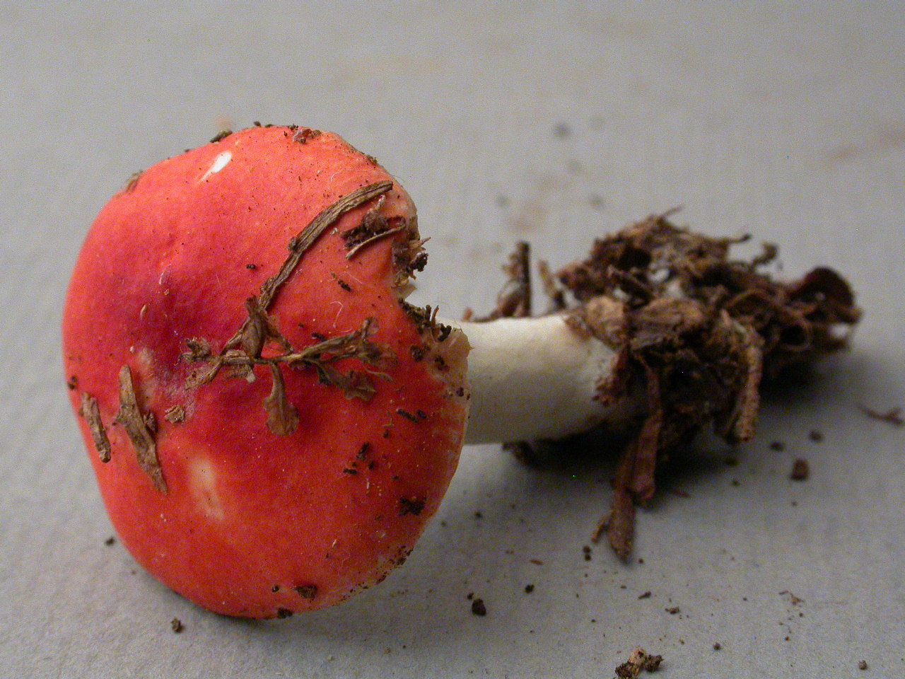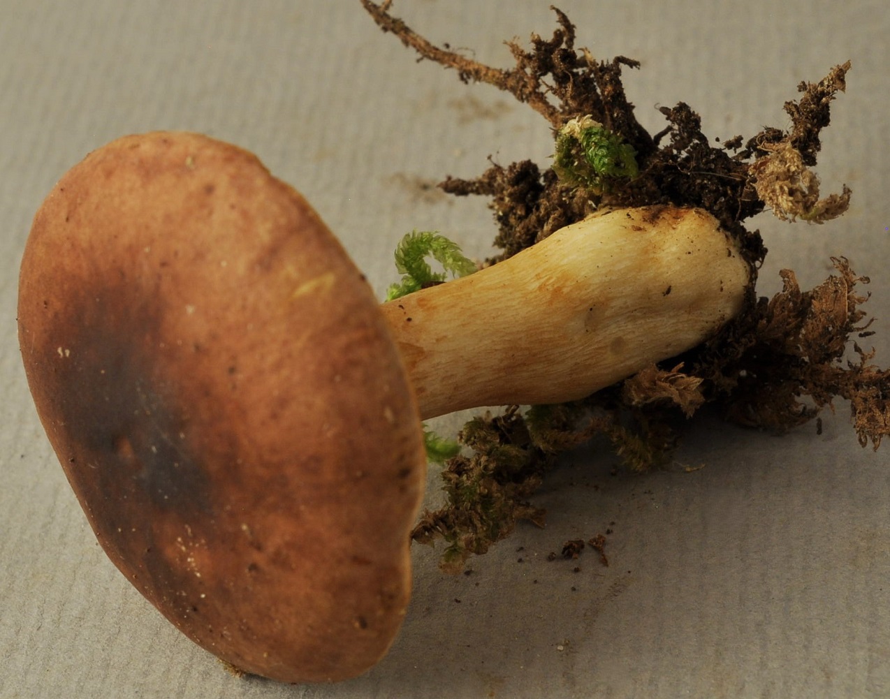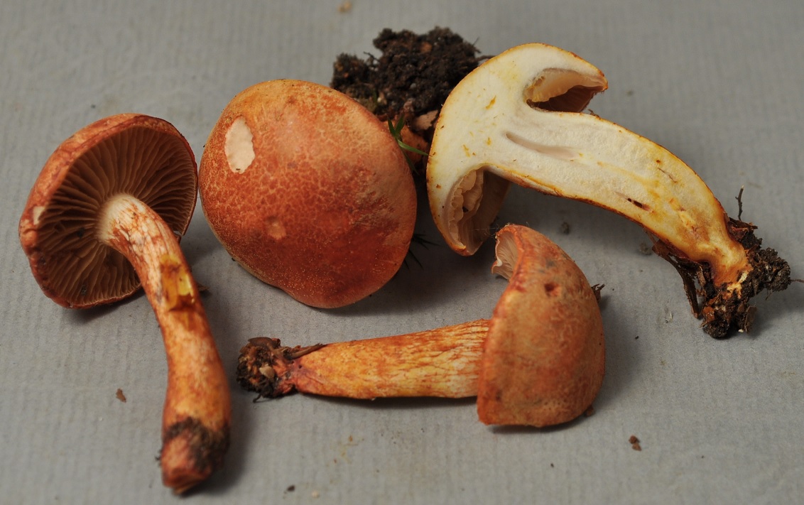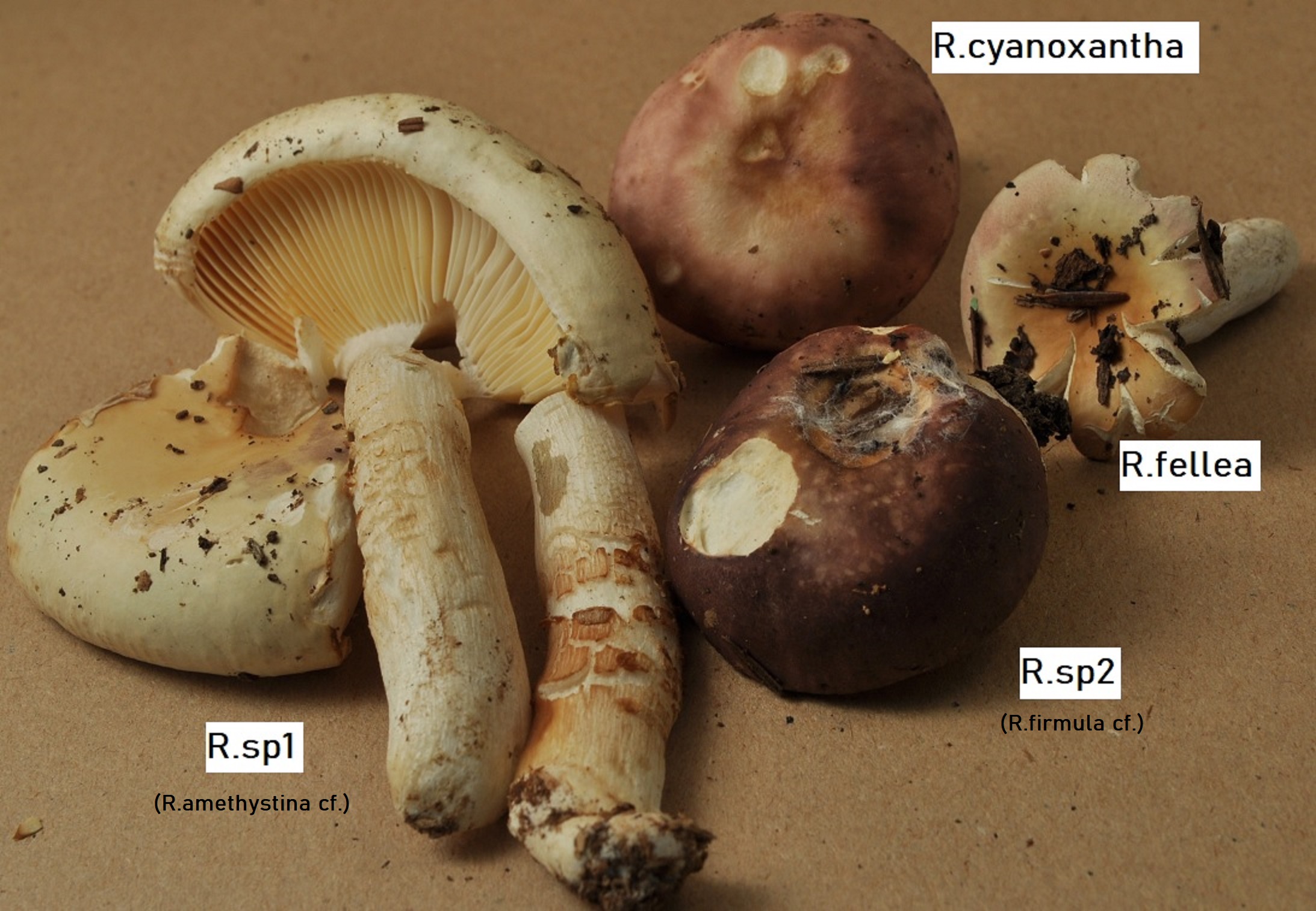 photo, CD8-F7 59. Habitus et écologie de R.suberythropus. Noter les couleurs du chapeau différentes.