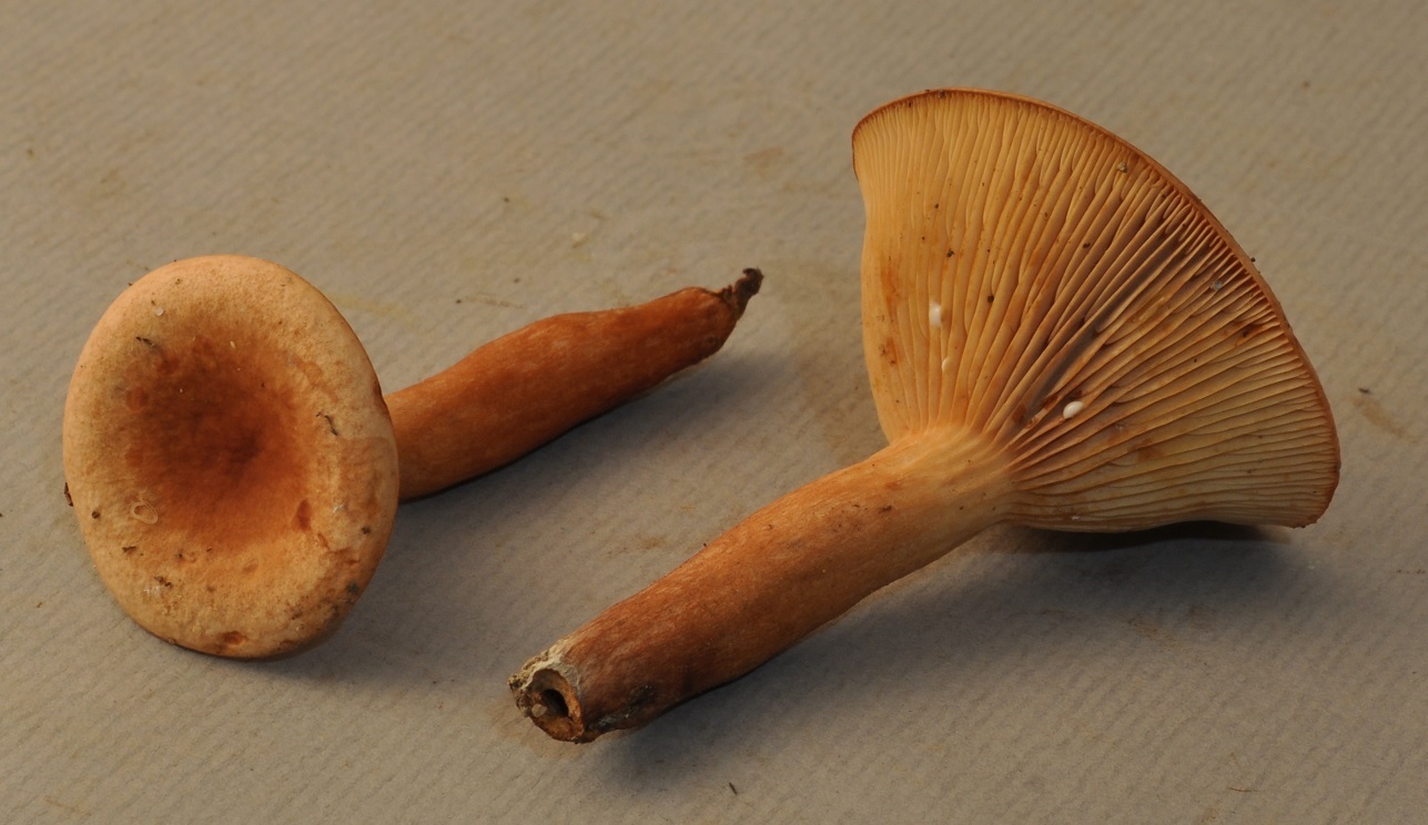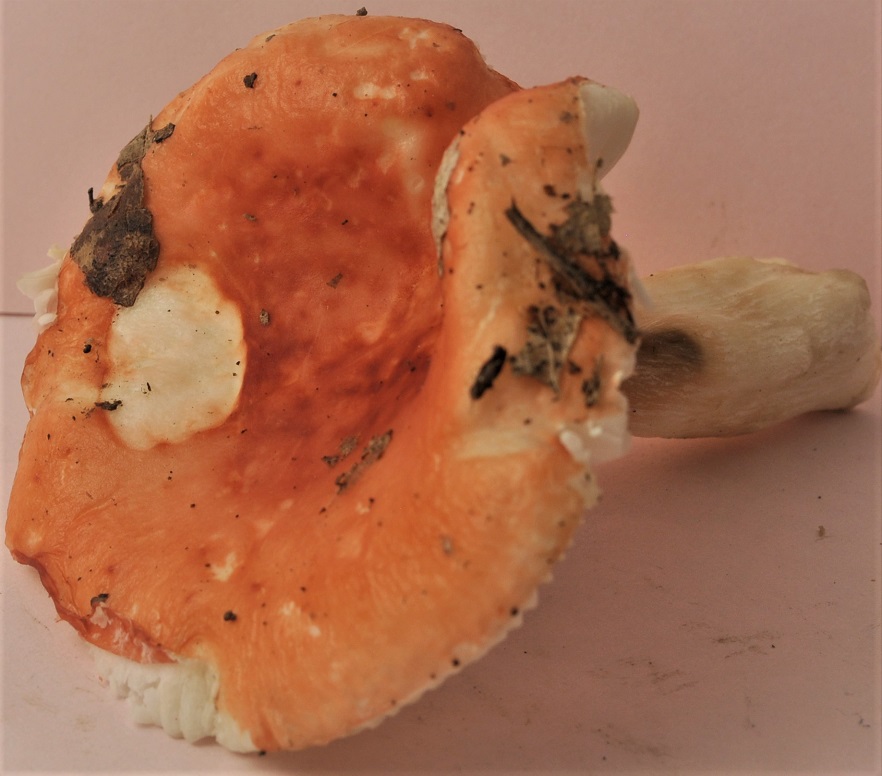 dessous, CD8-F9 42/43. Fe fortement rose_orange : R.vesca a encore frappé. Marge courte. Stipe ridulé, appointi, grisonnant.